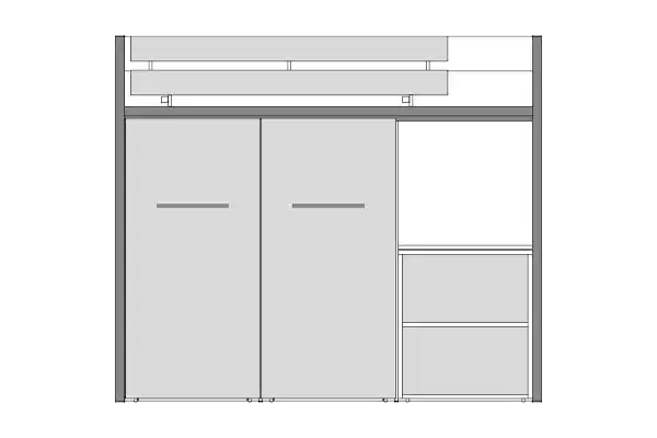 Sky per contenere e dormire. Tre contenitori estraibili per un totale di 270 cm. lineari di armadio. Con scala retro come foto in soli metri quadri 3,42, con scala frontale metri quadri 2