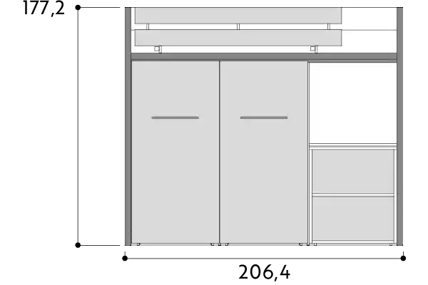 Il salvaspazio innovativo, pratico e conveniente. Letto con sottostanti contenitori estraibili e scrivanie estraibile con struttura in alluminio. Nella versione H. 116 il tutto montato su ruote, quindi spostabile. Materasso 200 x 90.